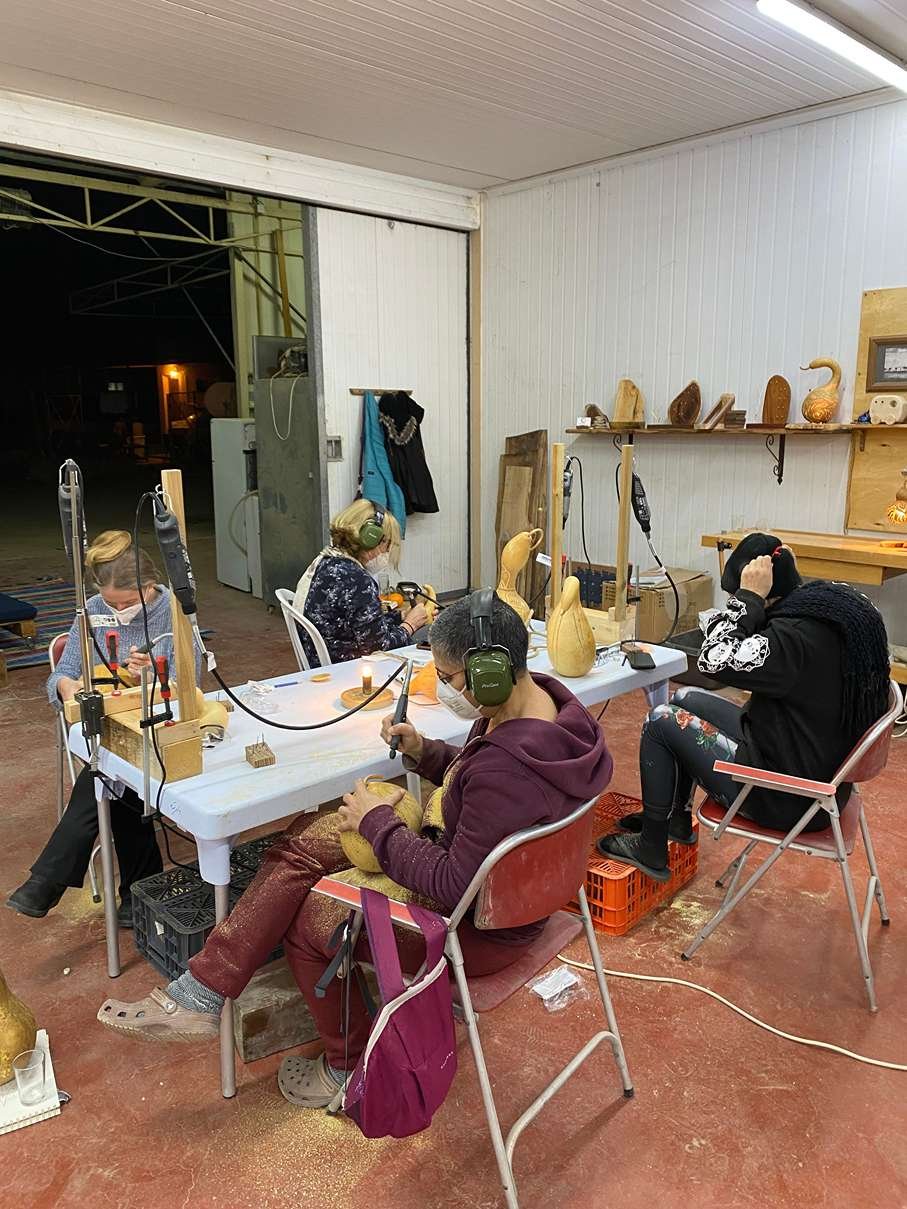 Workshops are held for 4 hours and I do all the preparations before you arrive, cleaning and preparing the gourd with all the electrics. When you arrive we will talk about the design process, the techniques of drilling on the gourd and how the machine works. I explain how to create simple patterns that are effective which I frequently use when creating lamps.